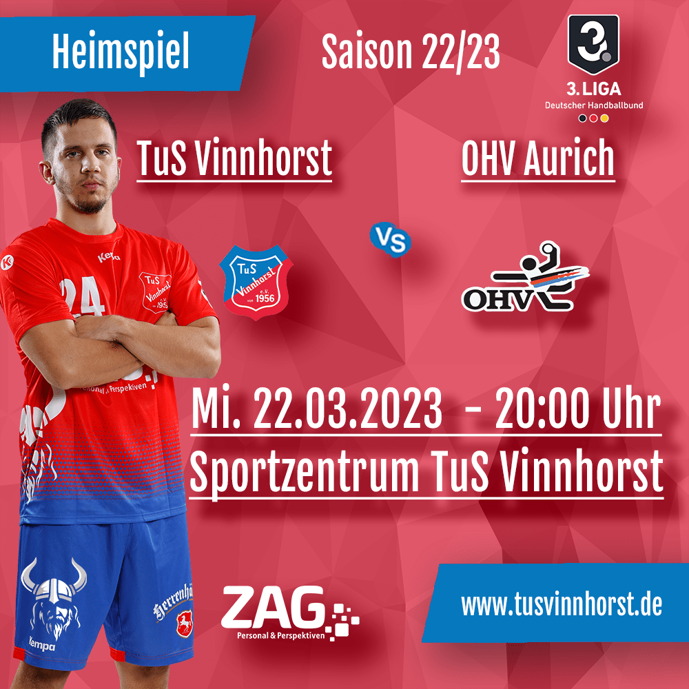 Der Derbysieg gegen den HSV Hannover ist noch nicht ganz aus den Knochen, da muss der TuS schon wieder ran. Am ungewohnten Mittwoch trifft das Team im heimischen Sportzentrum auf den OHV Aurich. Das Spiel ist Teil einer englischen Woche für die Vinnhorster. Anwurf am Mittwoch ist um 20 Uhr.
